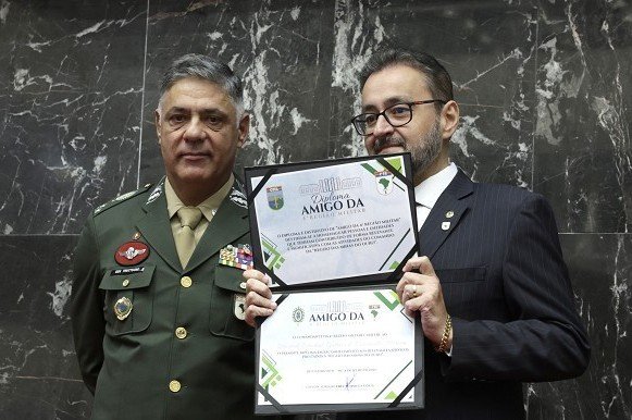Em resposta, o General Adriano Fructuoso da Costa agradeceu: “Receber esta homenagem na ALMG é motivo de grande satisfação. Valorizar o trabalho do Exército fortalece nossa missão de proteger a sociedade e demonstra a parceria entre as Forças Armadas e os representantes civis que apoiam nossa causa. Agradeço também ao deputado Gustavo Santana pela iniciativa e por reconhecer o esforço de nossos soldados.”