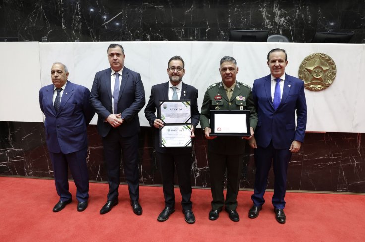 Na ocasião, o deputado Gustavo Santana entregou ao General de Divisão Adriano Fructuoso da Costa, comandante da 4ª Região Militar em Minas Gerais, uma placa de homenagem da ALMG, como reconhecimento ao trabalho do Exército no Estado, além de uma cópia do discurso proferido em plenário. Em seguida, o parlamentar recebeu a Medalha Amigo da 4ª Região Militar, acompanhada de seu diploma, concedida pelo Exército Brasileiro a personalidades civis e militares que prestam serviços relevantes à Região.