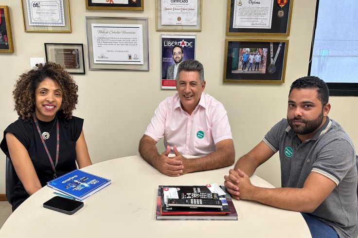 O secretário de agricultura, João Emílio, e o assessor Aguinelle da cidade de Jequitinhonha foram recebidos pela assessora parlamentar Laudiceia.