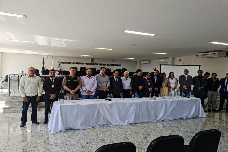 Na oportunidade, marcou presença na solenidade de lançamento da Pedra Fundamental da nova sede da Delegacia Regional da Polícia Civil e, também, entregamos uma nova viatura para a corporação, um reforço importante para o policiamento da cidade e região.